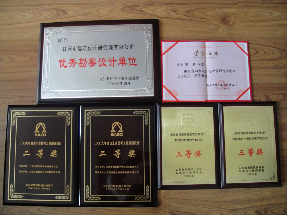 是山东省首批信用{Q?/span>AAAQ单位,׃省勘察设计行业优U企业Q山东省十佳设计院,׃省工人先锋号Q日照市(jng)?jng)文明单位Q日照市(jng)重合同守信用单位QISO9001质量理体系认证企业Q国家高新技术企业?/span>